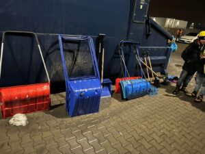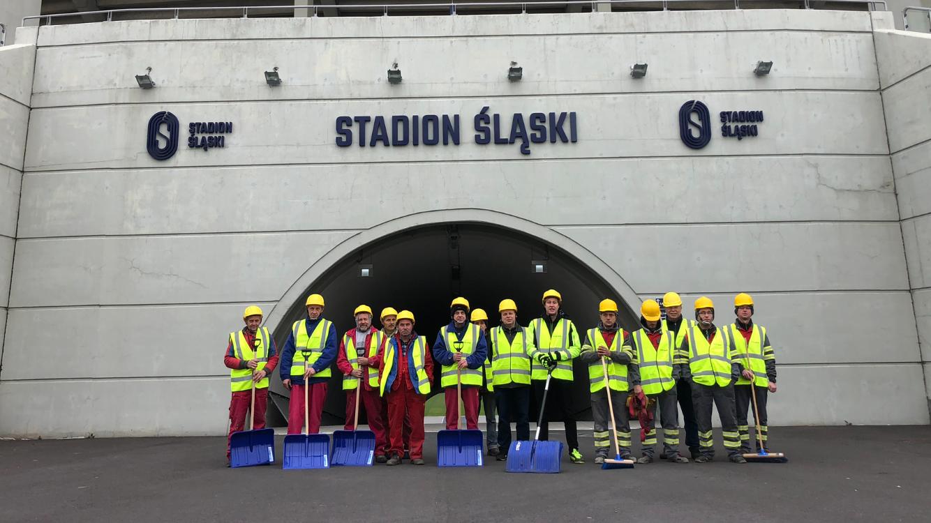 Najpierw zaczynamy od odśnieżania pierścieni wewnętrznych, czyli tych położonych najwyżej. Śnieg musimy przepychać więc do góry, tak by mógł spaść na płytę stadionu.